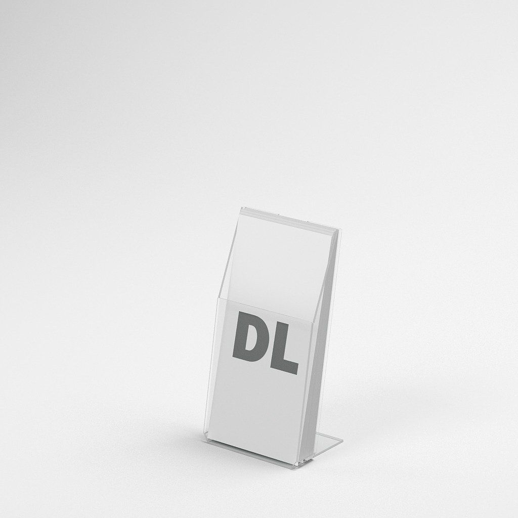 Formát letákov: DL na výšku – 99*210 mm (š*v) Hĺbka kapsy na letáky: 30 mm Materiál stojana: plexisklo Hrúbka stojana: 3 mm