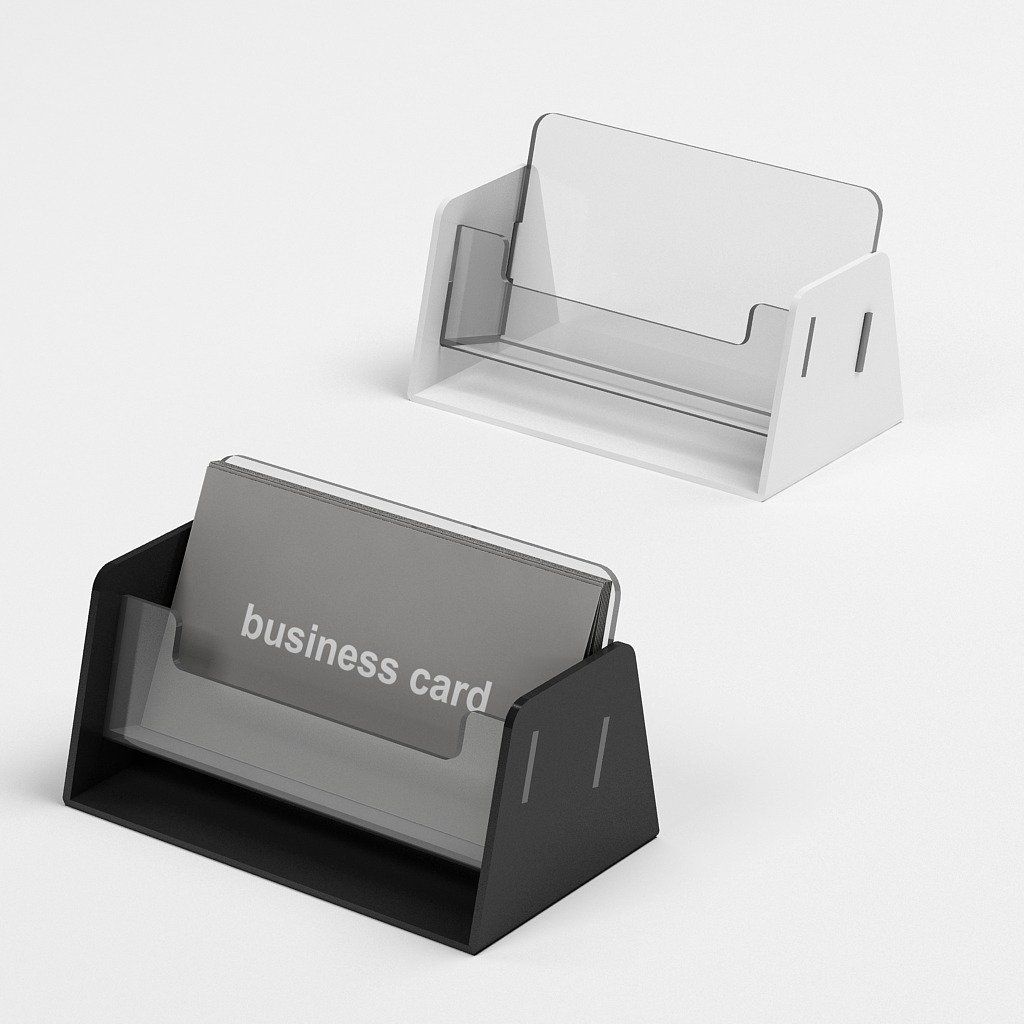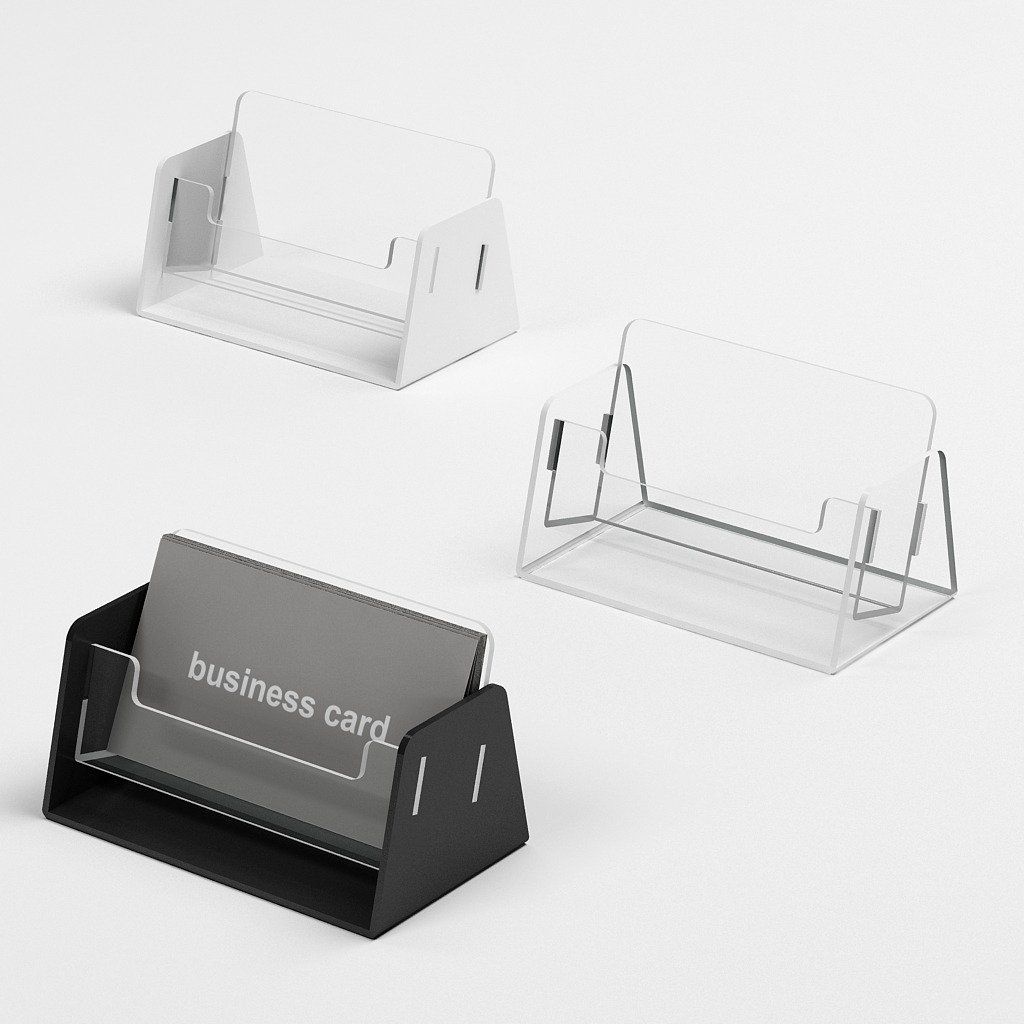 Stojan na vizitky ponúkame vo viacerých farebných prevedeniach (čírej, bielej a čiernej farbe), aby sa dal jednoducho zladiť s interiérom pracoviska alebo firemným dizajnom.