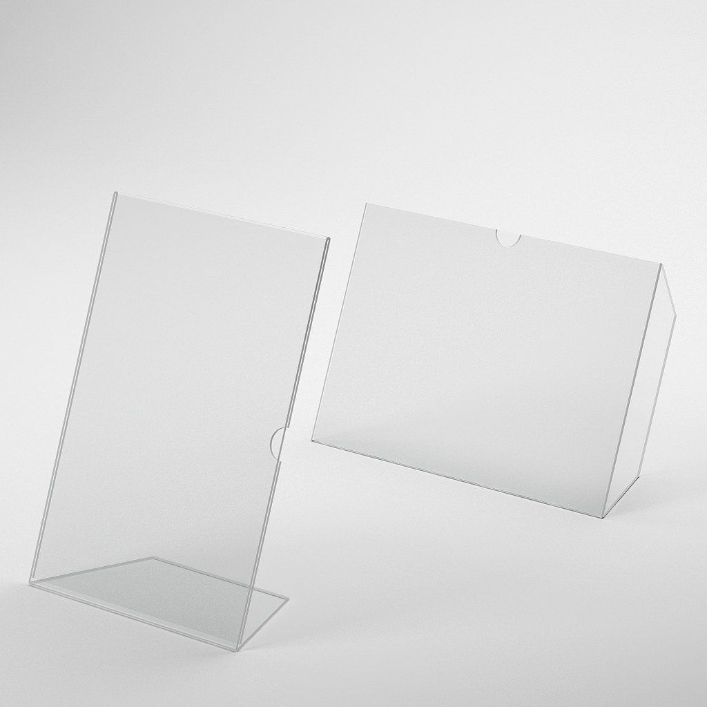 Pre formát letákov: od A6 do A4 Orientácia stojanov: na výšku alebo na šírku Materiál: plexisklo 2 mm Farba: transparentná